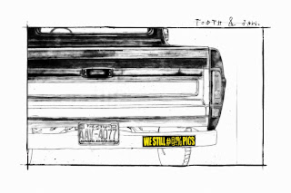 right, so people have been asking, so here's the process of tooth & jaw. i start on strathmore 400 series medium drawing paper at least 8"x11". i use a woodless pencil, 2b, for my gesture drawing. i start nice and loose and tighten it up as i go. at this stage i'm just worried about proportion and anatomy. i try not to get too uptight here because i'll clean it up in the next step where most of the work is done, and the final version will usually only run between 2 and 4 inches.